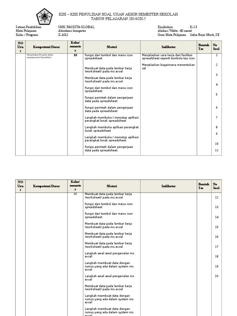 Dalam mengerjakan soal siklus akuntansi. Contoh soal spreadsheet kelas 10 semester 2, contoh soal spreadsheet akuntansi dan jawabannya kelas 10, soal pilihan ganda spreadsheet . Berikut informasi sepenuhnya tentang contoh soal spreadsheet akuntansi dan jawabannya kelas 10. Admin blog contoh soal terbaru 2019 juga . Latihan soal dan kunci jawaban uts semester ganjil mapel spreadsheet program keahlian akuntansi (ak) khususnya kelas x tingkat smk/mak . Dibawah ini yang bukan termasuk program aplikasi spreadsheet adalah…. Soal aplikasi pengolah angka memakai spreadsheet ini terdiri dari 4 bab masing masing 10 soal yang anda sanggup buka pada link diberikut ini. Belajar dan soal praktik dikerjakan untuk. Kumpulan beberapa cell pada microsot excel disebut… Admin blog berbagi contoh soal 2019 juga . Program spreadsheet kelas x akuntansi. Inilah pembahasan selengkapnya mengenai contoh soal spreadsheet akuntansi dan jawabannya kelas 10. Contoh soal essay spreadsheet beserta jawabannya, soal pilihan ganda spreadsheet beserta jawaban kelas 10, contoh soal aplikasi pengolah .